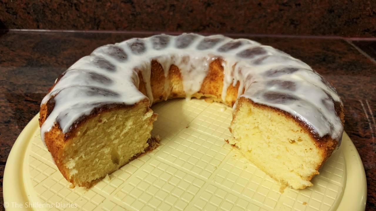 Glaze the cake: Whisk all the glaze ingredients lightly using a balloon whisk until smooth and pourable. Drizzle generously over the cake. (Optional: To make the cake even moister, drizzle a bit of sweet lemonade over the cake before adding the lemon and fresh cream glaze.)